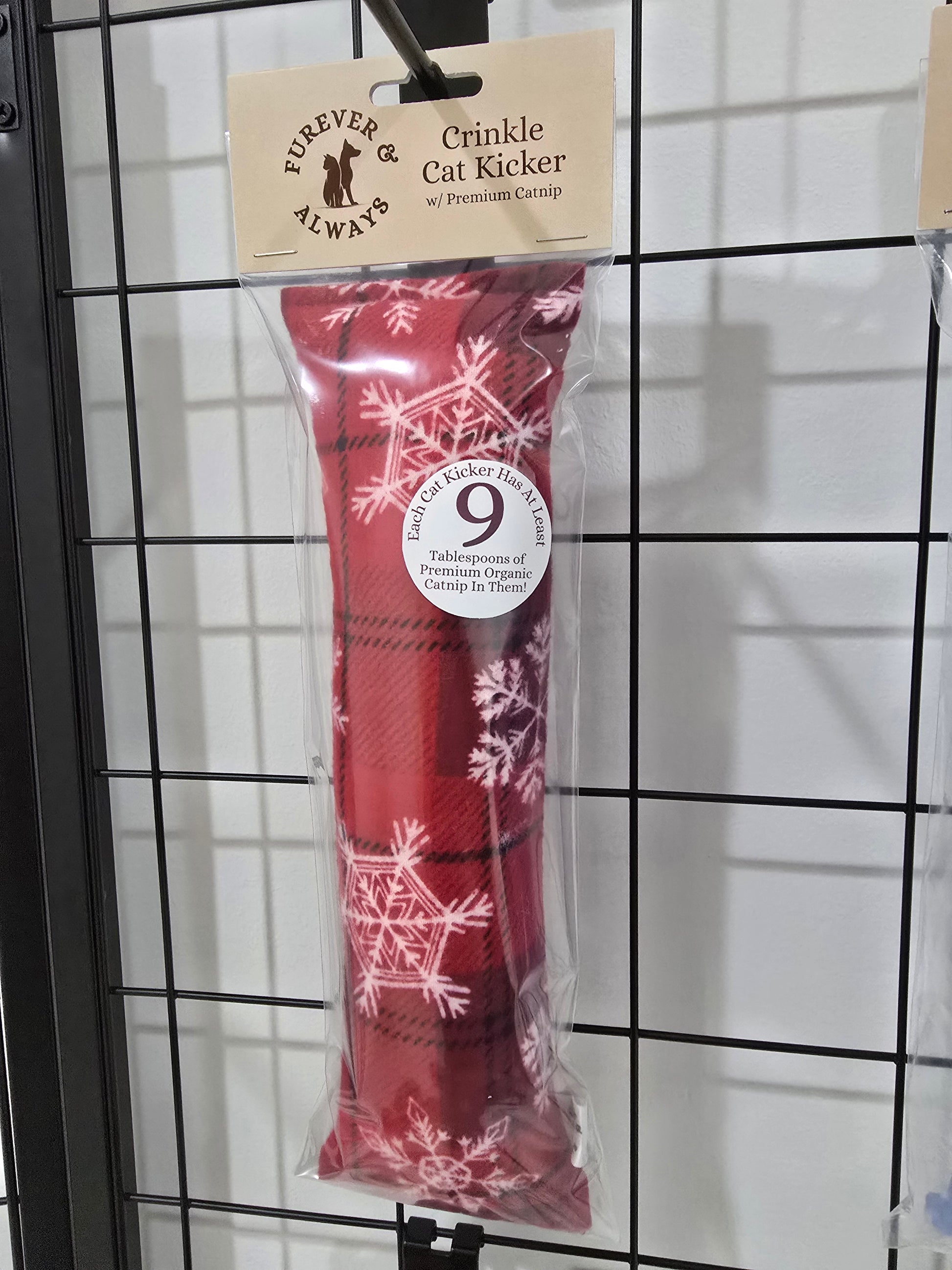 This flannel Red Snowflake cat kicker was handmade for happy paws especially for the holiday season! Packed with premium organic catnip and crinkly goodness for a sensory experience your kitty can’t resist!